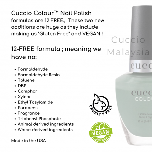 Cuccio Colour™ Professional Nail Lacquer is formulated with Triple Pigmentation Technology for rich coverage in one coat and true coverage in two coats.
