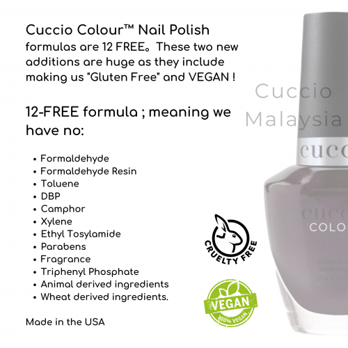 Cuccio Colour™ Professional Nail Lacquer is formulated with Triple Pigmentation Technology for rich coverage in one coat and true coverage in two coats.
