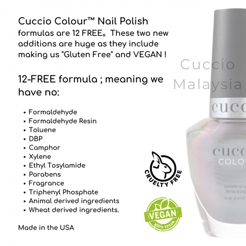 Cuccio Colour™ Professional Nail Lacquer is formulated with Triple Pigmentation Technology for rich coverage in one coat and true coverage in two coats.