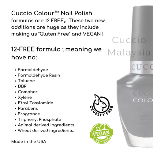 Cuccio Colour™ Professional Nail Lacquer is formulated with Triple Pigmentation Technology for rich coverage in one coat and true coverage in two coats.