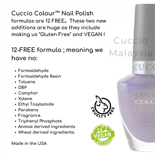Cuccio Colour™ Professional Nail Lacquer is formulated with Triple Pigmentation Technology for rich coverage in one coat and true coverage in two coats.