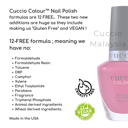 Cuccio Colour™ Professional Nail Lacquer is formulated with Triple Pigmentation Technology for rich coverage in one coat and true coverage in two coats.